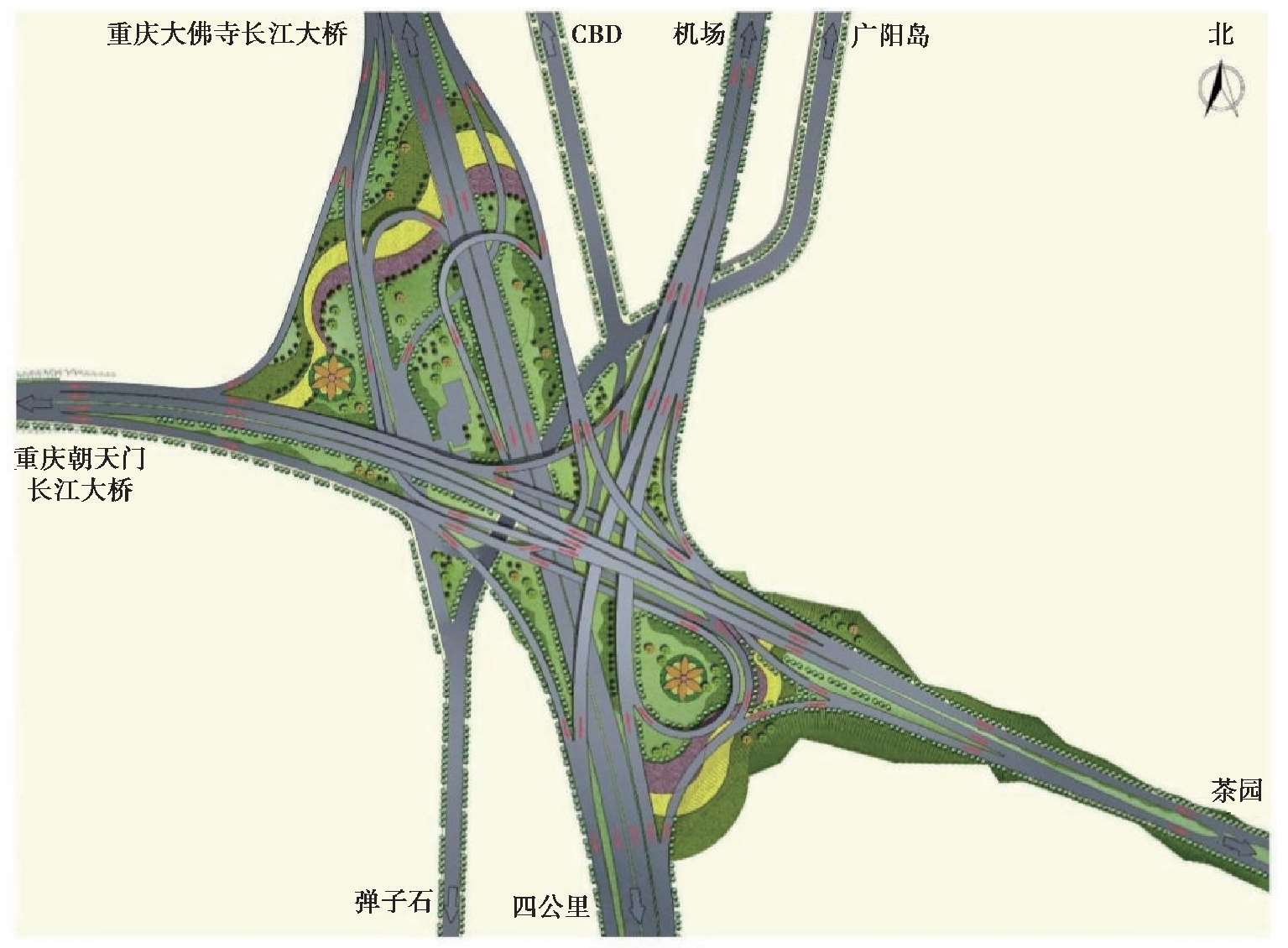 图 2.9 重庆黄桷湾立交桥交通流向图