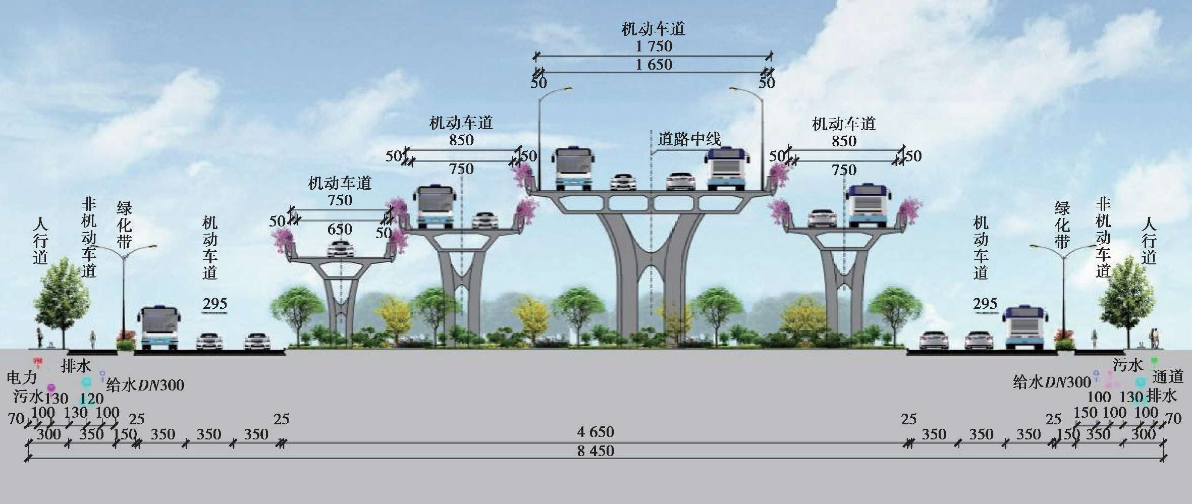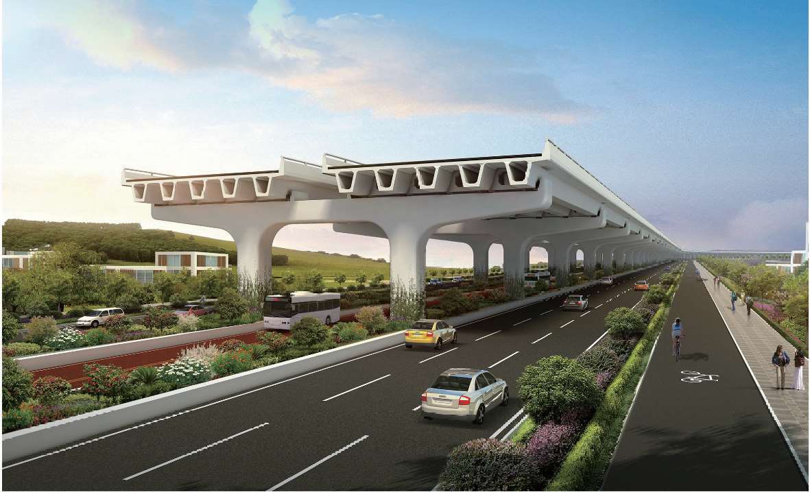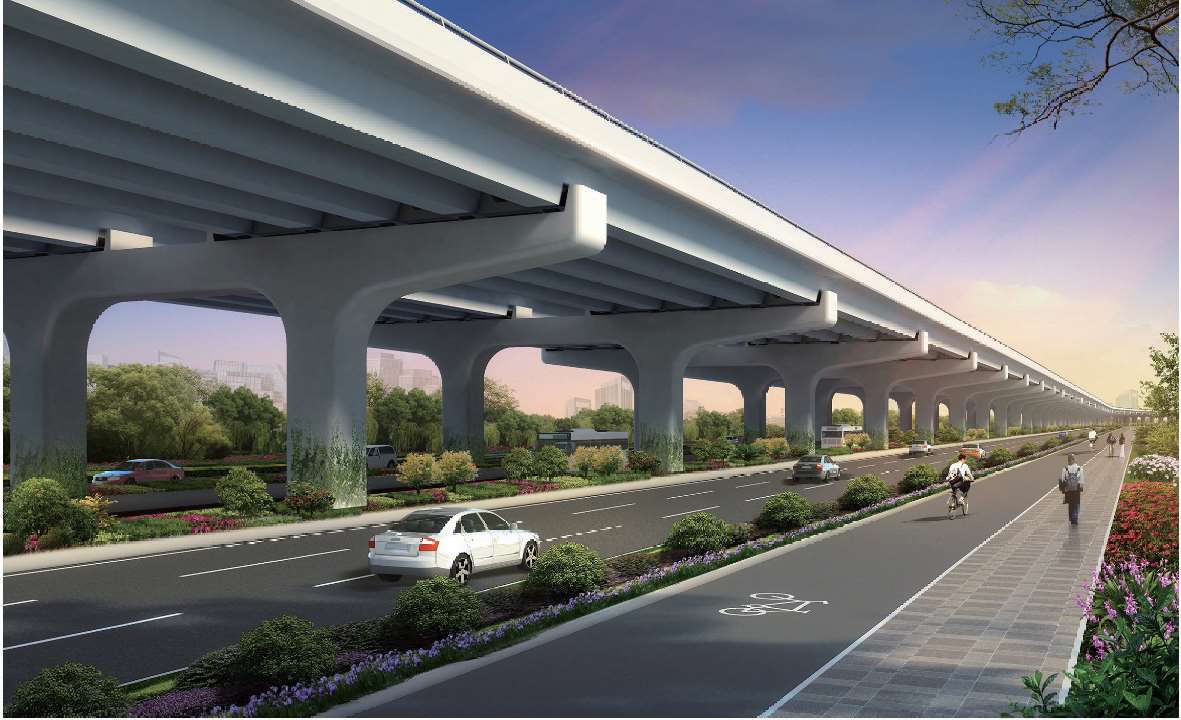 高架结构总体设计必须同时满足两大功能性要求,即高架结构的实用功能性和高架结构的景观功能性,同时还要注重高架结构的“绿色生态”特征。实用功能性是指高架结构的可实施性、高架结构的安全性、高架结构的交通功能性(特别强调乘客的行车舒适性指标)、高架结构的耐久性、高架结构的低维护性、高架结构的造价合理性;景观功能性是指高架结构自身的建筑美之功能,以及其与周边城市环境的相互和谐与提升之美,“绿色生态”特征是指高架结构在施工及运营过程中采用先进工艺,力求达到少噪声、少扬尘、少影响交通,快速施工、标准化施工等。