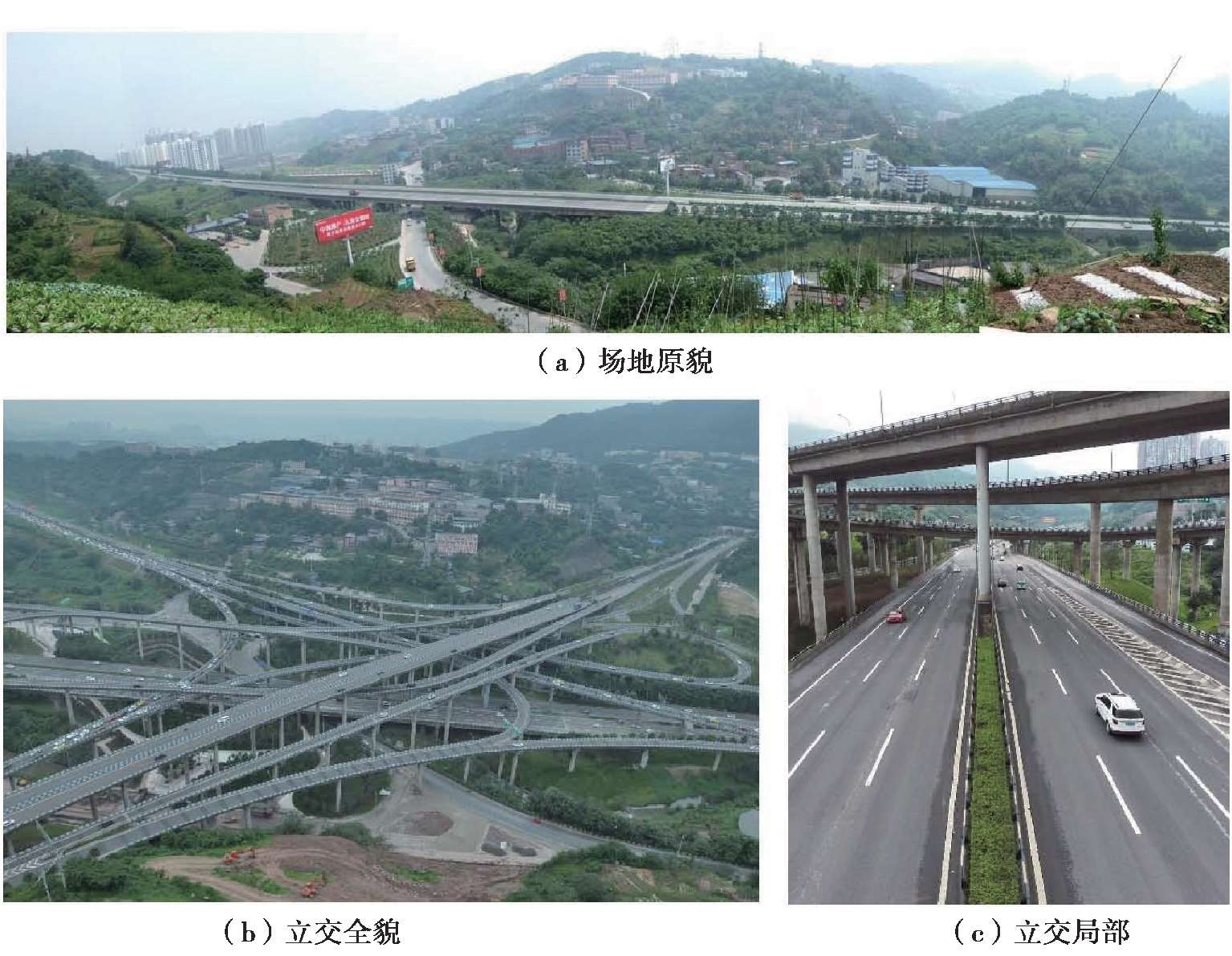 重庆黄桷湾立交桥是国、内外少见的由 3 条快速路(三横线、机场专用高速、内环高速)相交形成的枢纽型立交;并保留了内环高速与弹广路的连接系统,8 个主线交通流向,20 个转向交通流向,交通功能强大。本立交主线有 8 个交通流方向;新建及改建匝道达到 20 条。