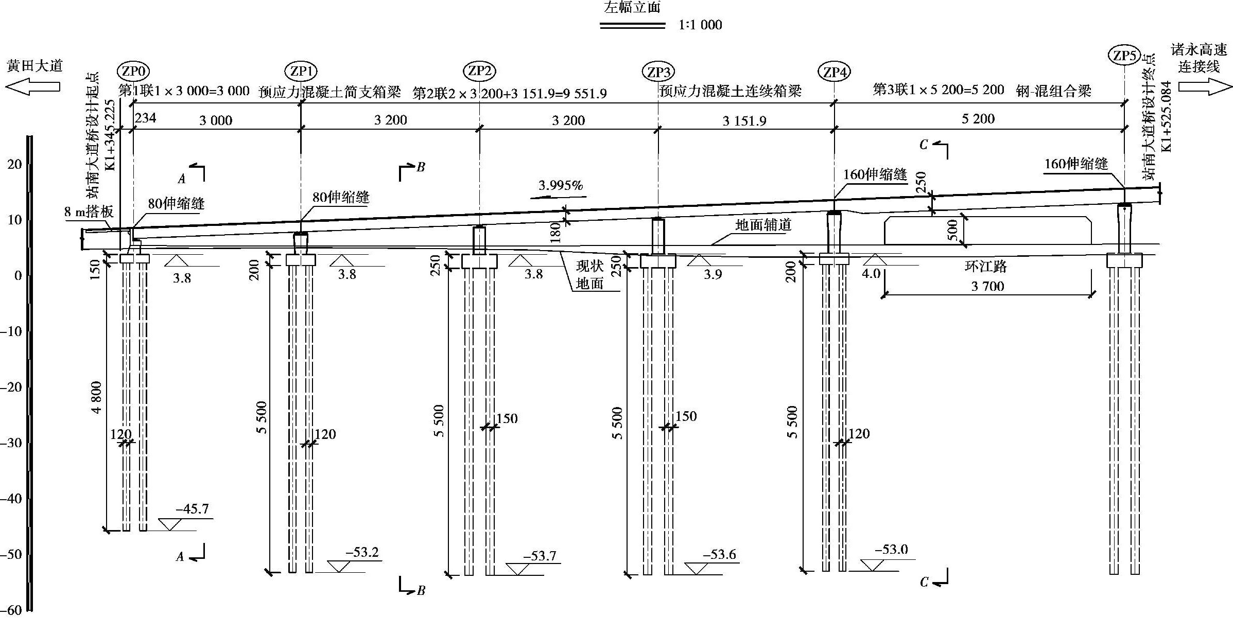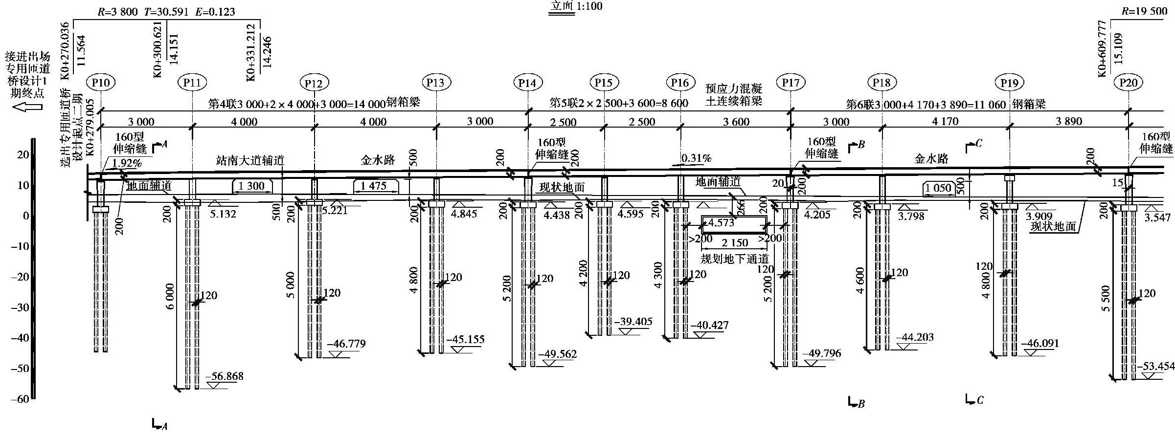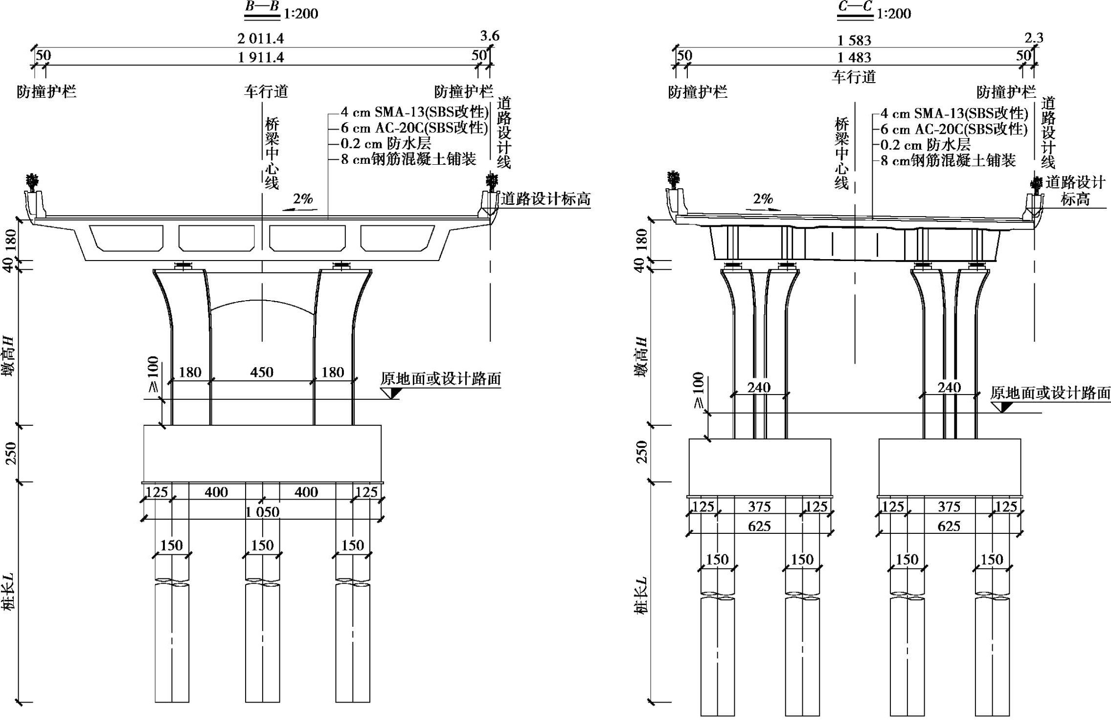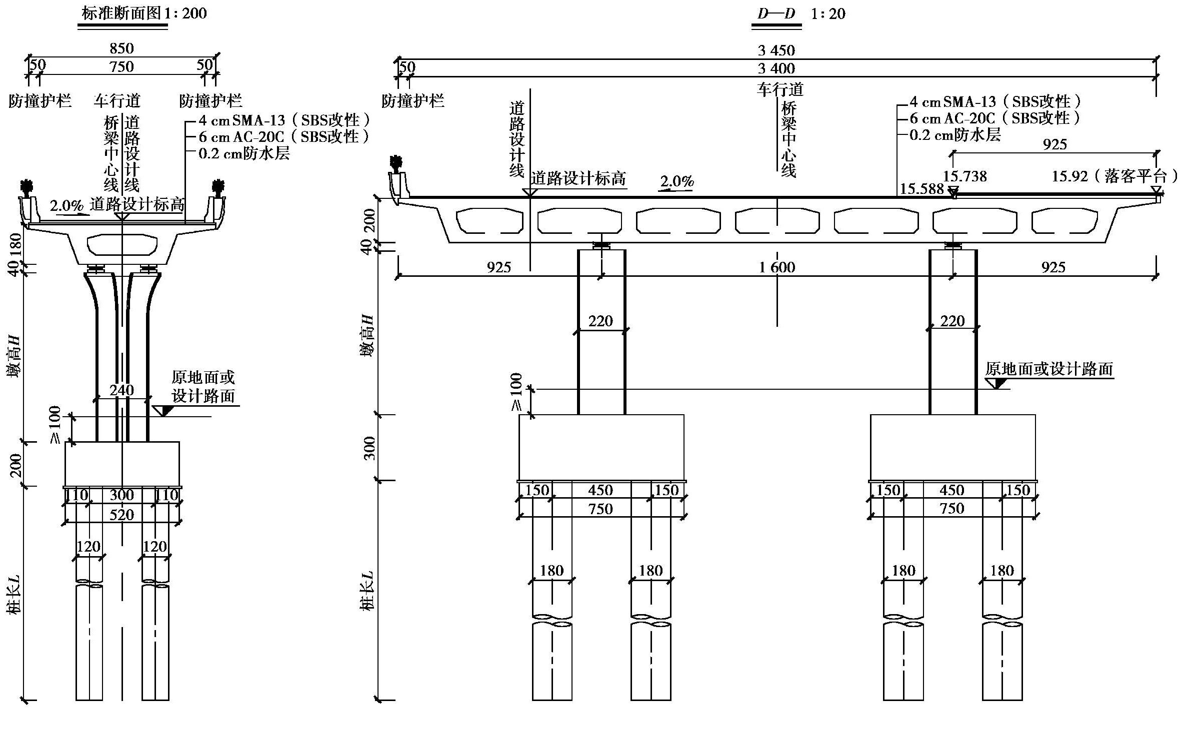 主线高架桥分为高架桥梁标准段和上跨交叉路口的节点桥两种类型。