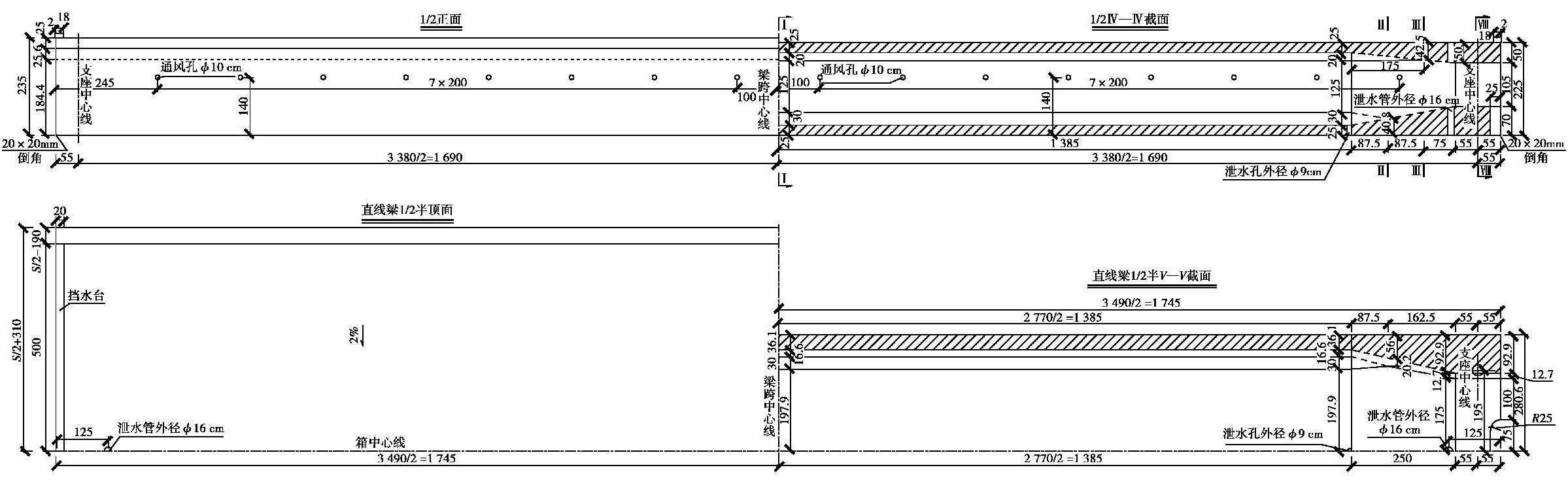 图 2.51 35m预制简支梁构造图(单位:cm)