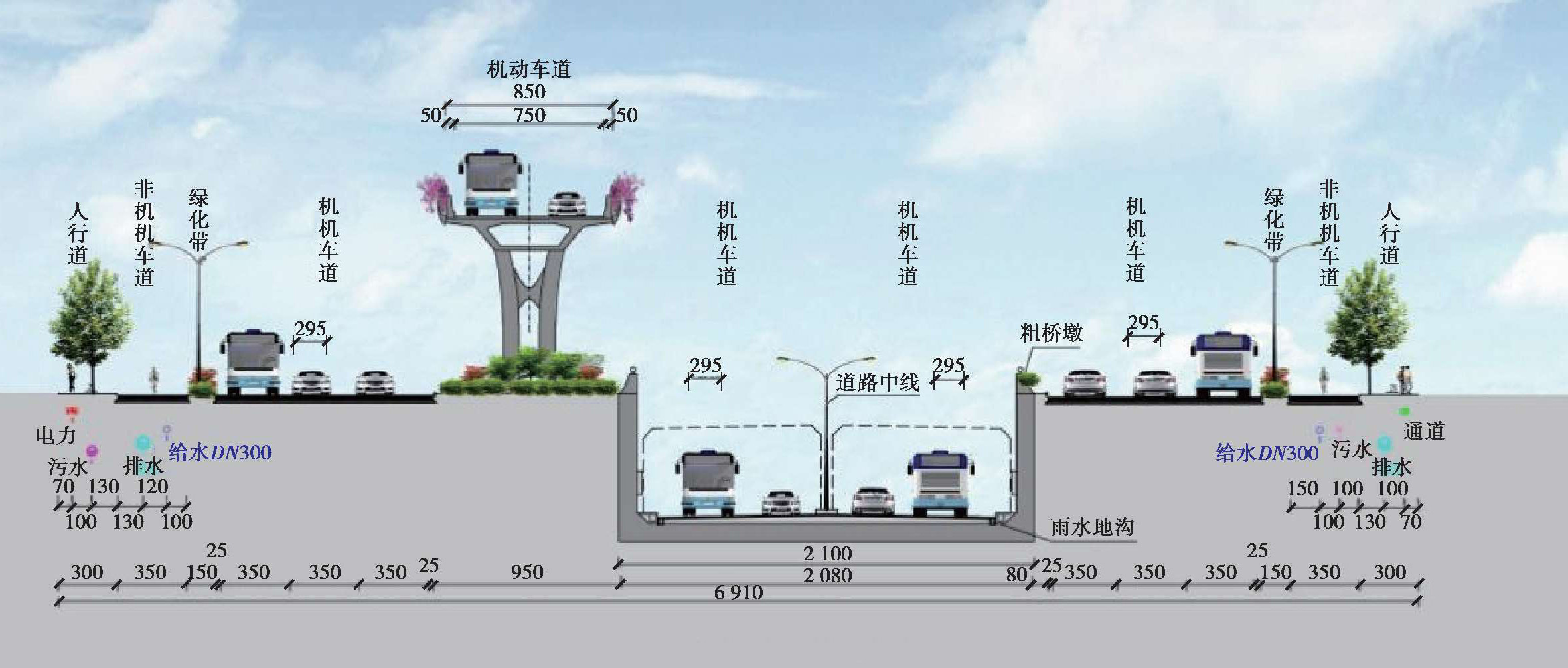 ②高架区间桥梁大部分整体敷设在江东大道路中绿化带内,区间标准梁采用简支梁体系,标准跨度为 35 m,相较于连续体系,施工简单、对城市环境影响小,对道路占用及交通影响周期短。