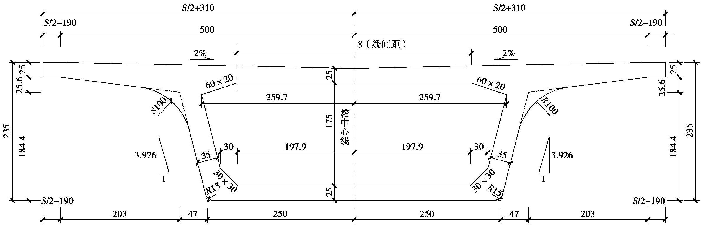 伏牛溪站以南基本全为高架段,能充分发挥预制工艺的规模优势,其结构采用无支座全固接体系,箱梁采用节段预制拼装形式。该体系具有以下特点: