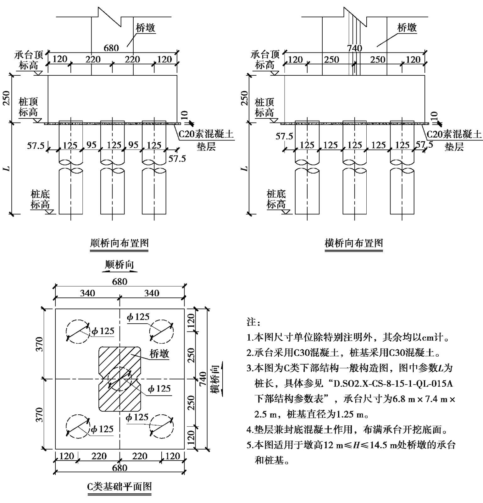 图 2.43 双线桥C类桥墩一般构造图(单位:cm)