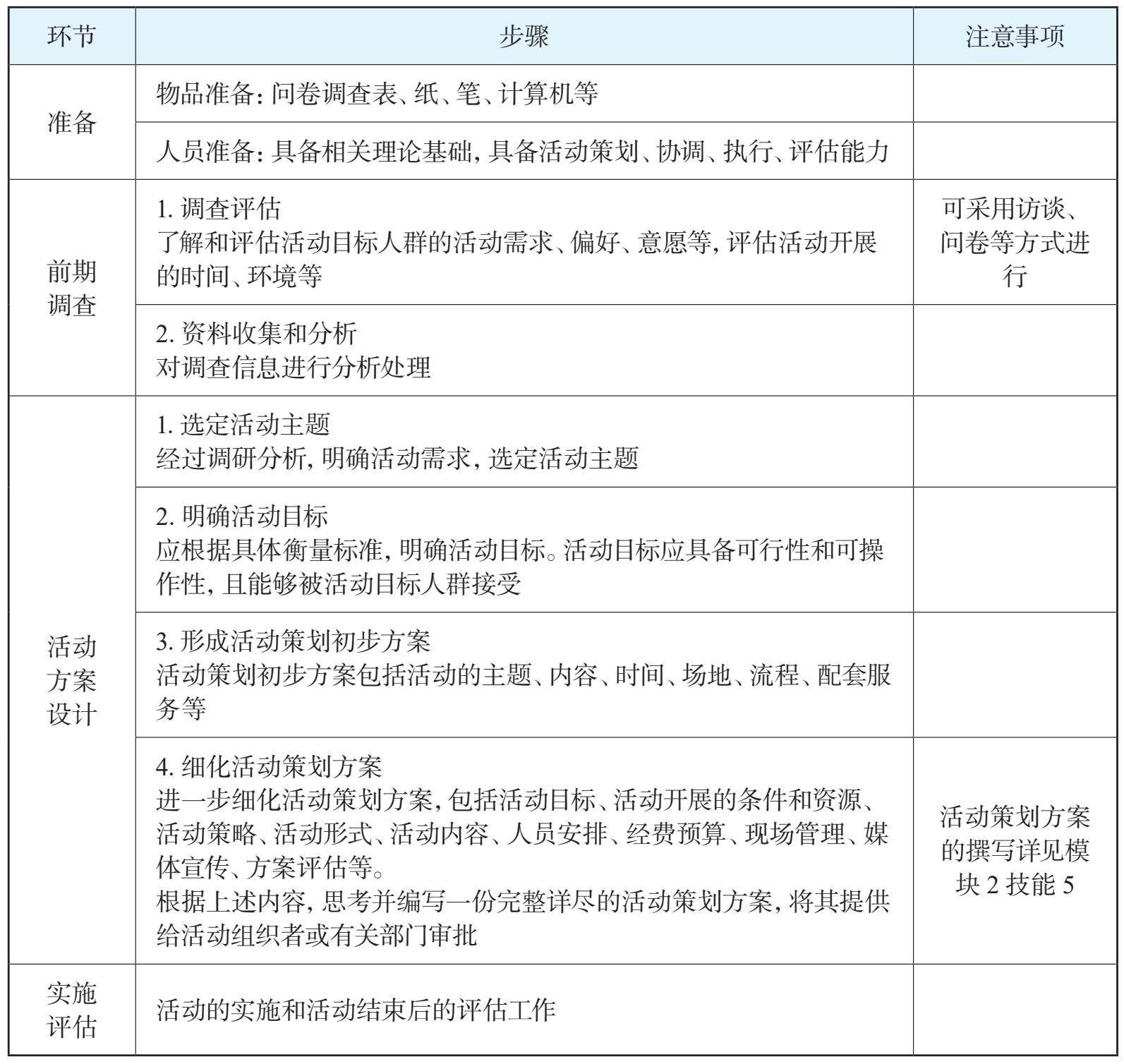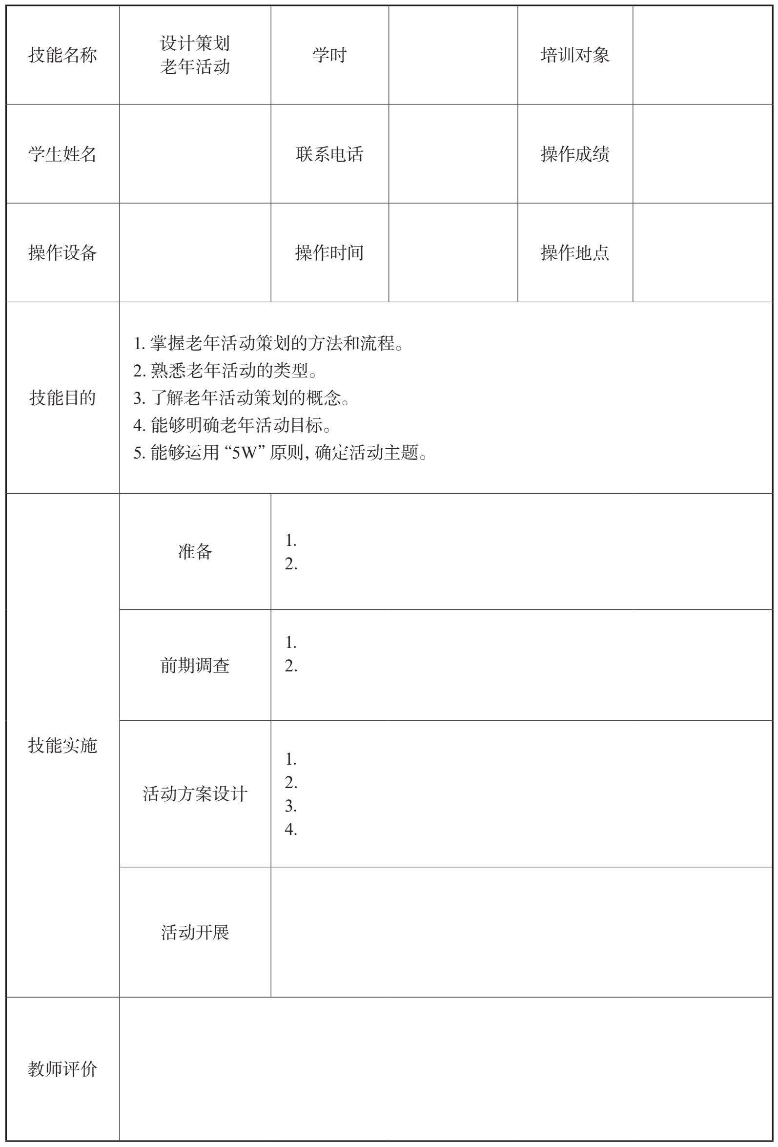 (1)能够开展老年活动前的调研,确定老年活动目标。