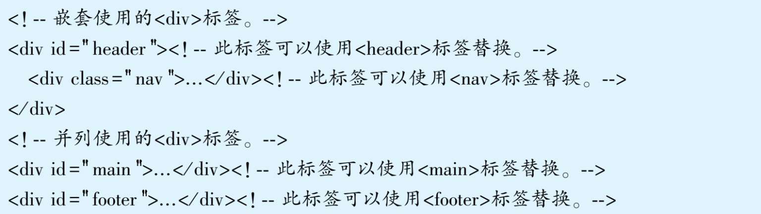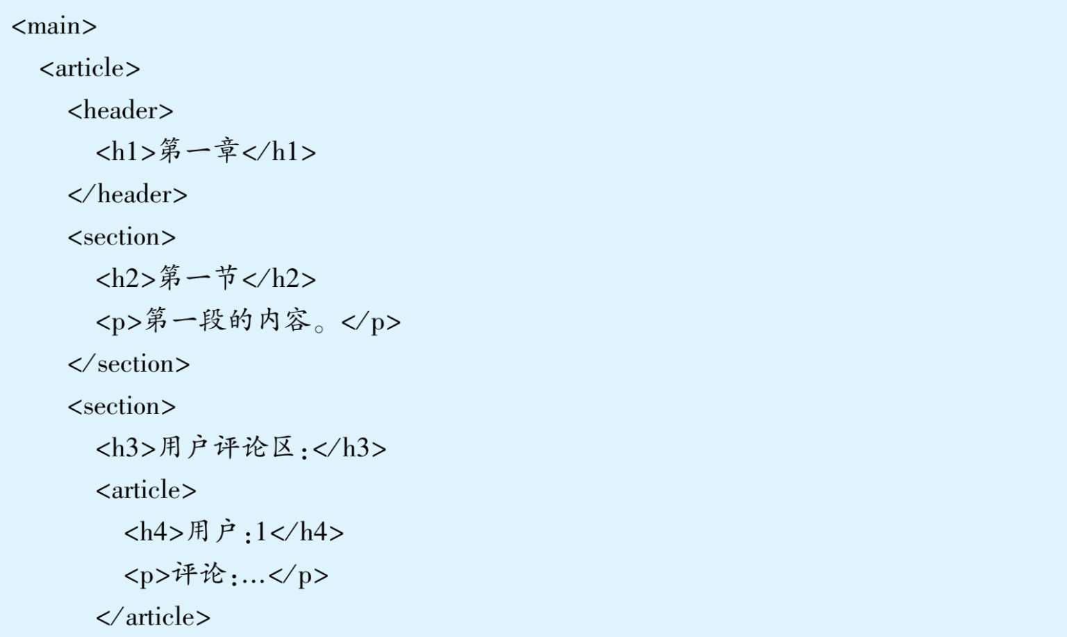 ②<section>标签内通常嵌套内容结构标签或者文档内容标签,但是不能嵌套<main>标签。