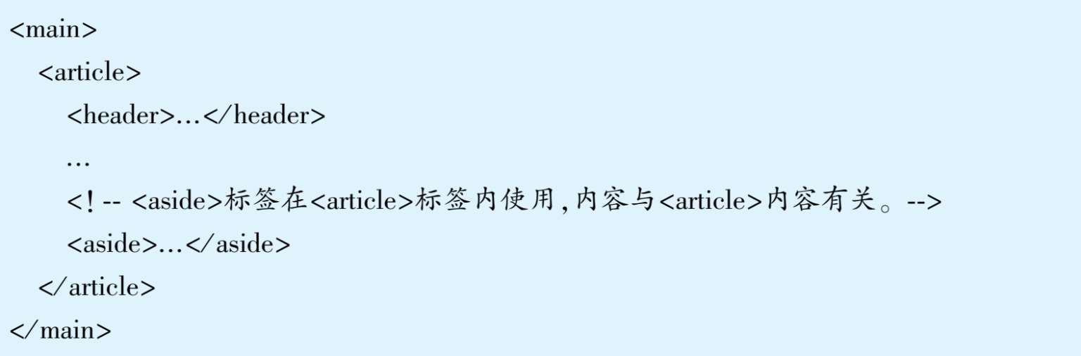 ②<aside>标签内通常嵌套内容结构标签或者文档内容标签,但是不能嵌套<main>标签。
