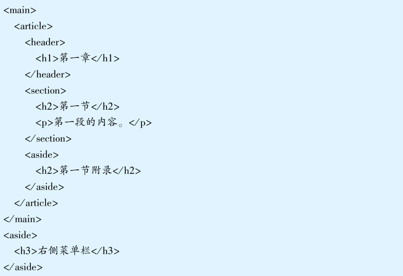 ③文档里可以有若干个<aside>标签,但不要直接嵌套自身使用。