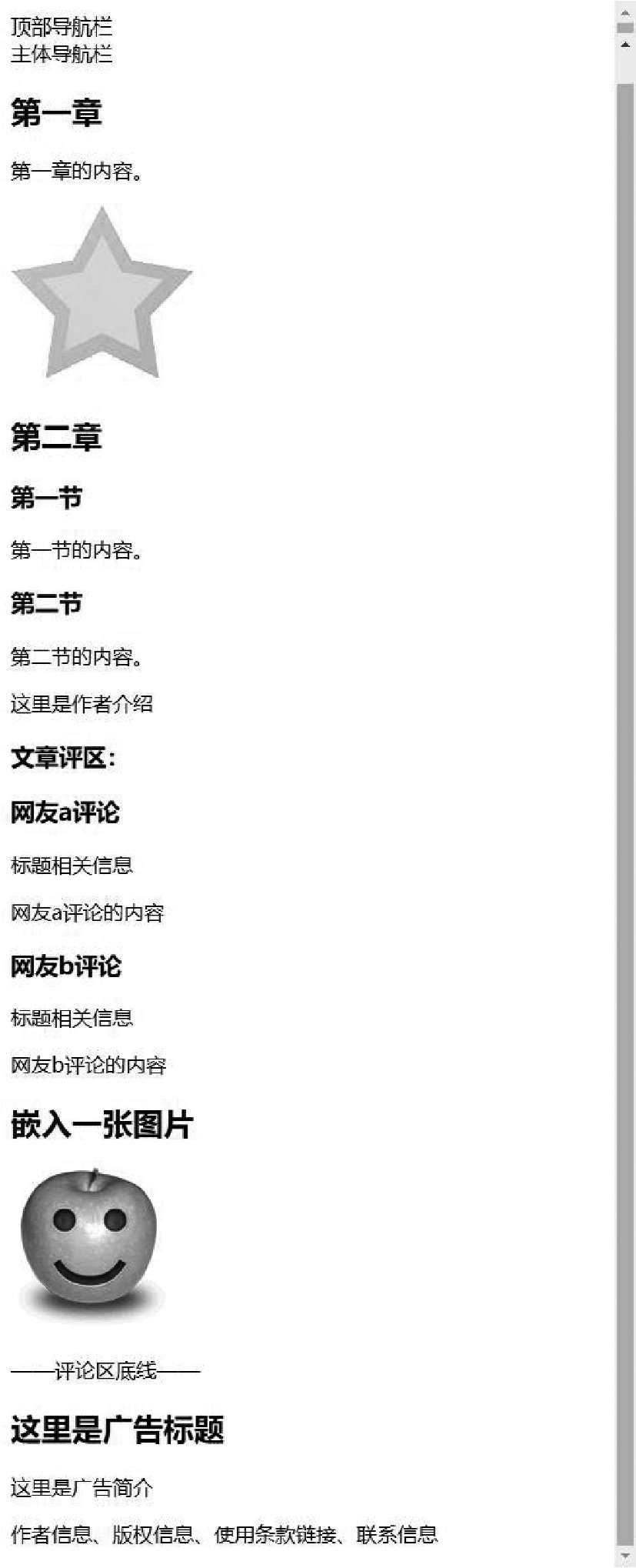 按照图2.16和图2.17所示,使用内容结构标签制作这个网页的HTML5结构文档。