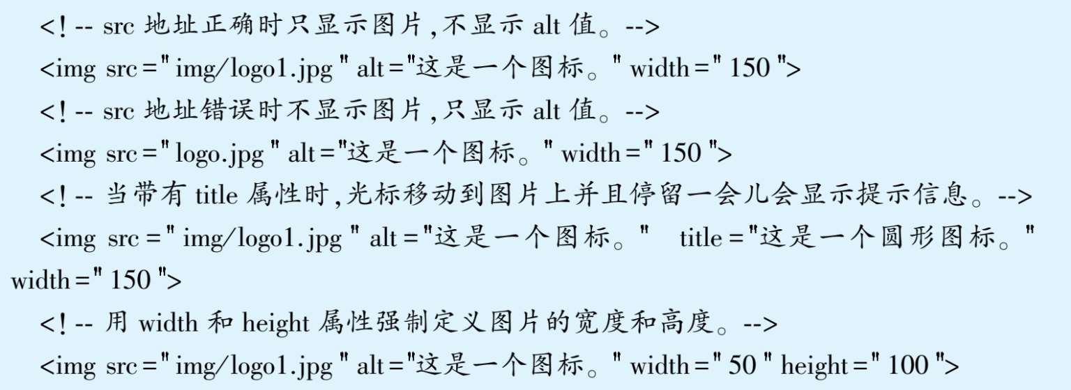 图像标签是用来定义文档中图片结构和位置的标签。例如图3.1所示方框内为网页中常见的图像形式。