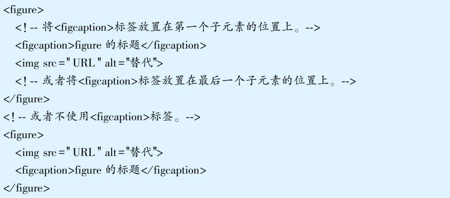 ①<figure>标签通常嵌套在内容结构标签内部使用。