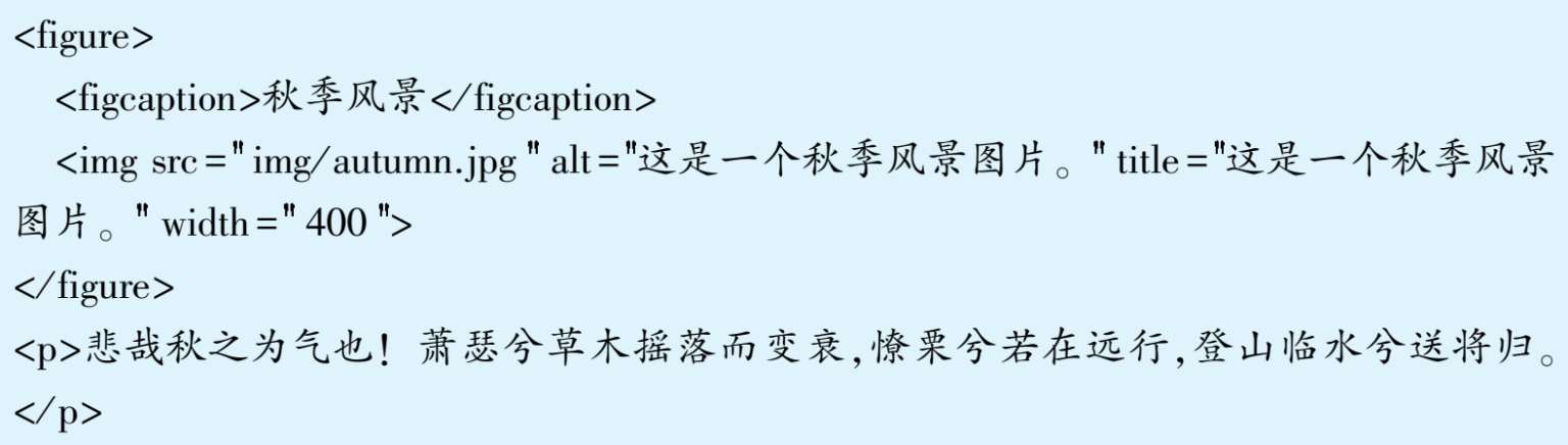 ②可以使用<figcaption>标签在<figure>标签内添加且只能添加一个标题。<figcaption>标签是一个标准标签,只能放置在<figure>标签内的第一个或者最后一个子元素的位置上,标题文字默认居左显示。