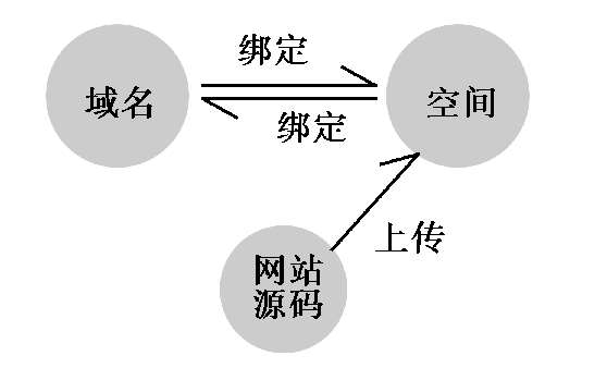有了域名后还是不能访问网站,因为网络中没有存储网站文件的地方,所以还需要一台全天候运行的服务器或者机群组成的虚拟服务器来存储网站的文件,以保证用户随时都能访问这个网站,而运行在这台计算机中的存放网站文件的空间就叫做网站空间(WebSite host)。之后就可以将制作好的网页文件通过FTP软件上传到空间中,供用户浏览和访问网站中的内容。域名、空间与网站源码的关系如图1.15所示。
