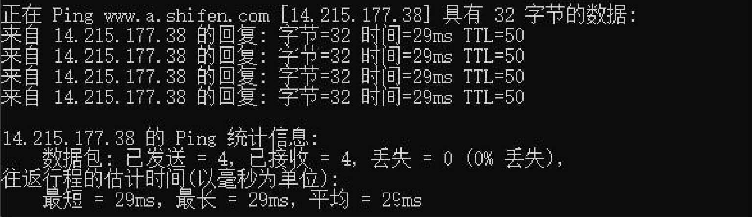 通过使用DOS命令的ping查看域名对应的IP地址。在DOS环境中输入ping空格和网址,按回车键后就能查看到域名对应的IP地址。例如:ping www.baidu.com,可以看到百度的IP地址为14.215.177.38。同样,在地址栏中输入这个IP地址也可以访问百度网站,如图1.11所示。