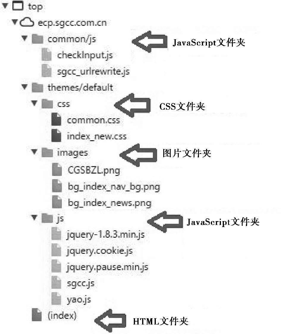 网页文件使用规范的命名和文件目录结构,不仅有助于网站建设和管理,还有助于后期维护和修改。尤其是在开发大型网站时,规范的命名更有助于开发团队成员间合作。某公司首页文件的目录结构如图1.16所示。