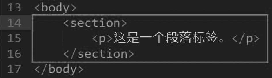 在<head>标签内和<body>标签内书写代码时,最好写出代码的层级关系,也就是按层级书写代码,这样不仅查看方便,也方便后期的修改。在调整单行标签层级时,将光标放到要调整层级的标签前,按Tab键即可添加左侧缩进符;在调整多行标签层级时,用光标框选中要调整的标签,按Tab键即可多行添加左侧缩进符,如图1.27所示。注意:不要使用空格符调整层级,因为空格符添加的符号含义是分隔符,它会改变元素之间的间距。