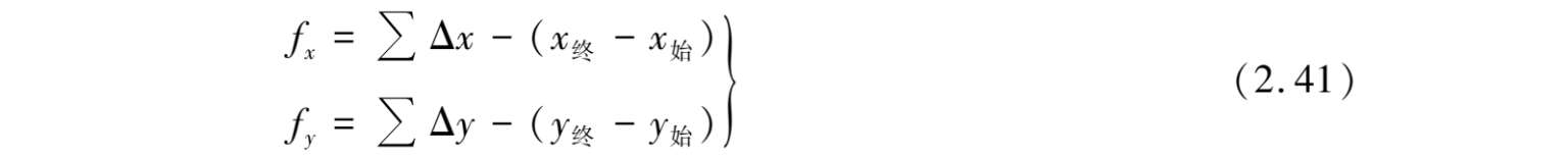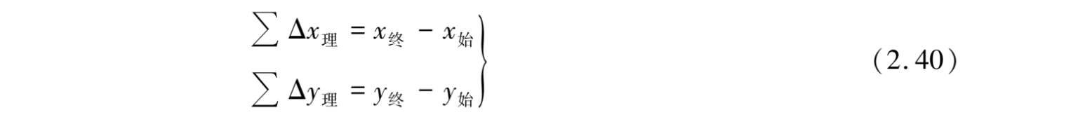 ④坐标增量闭合差的调整及其校核和闭合导线一样,按照公式(2.34)和公式(2.35)计算。