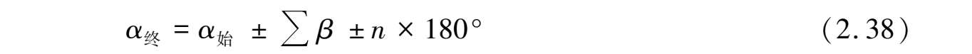 如图 2.23 所示,根据起始边BA的坐标方位角α BA 及观测的各右角,按本项目任务 6 中坐标方位角推算公式(2.28),推算CD边的坐标方位角α′ CD 。