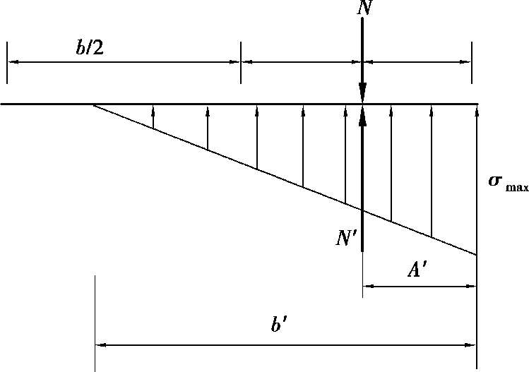 式中 W ——相应于应力较小基底边缘截面弹性模量;