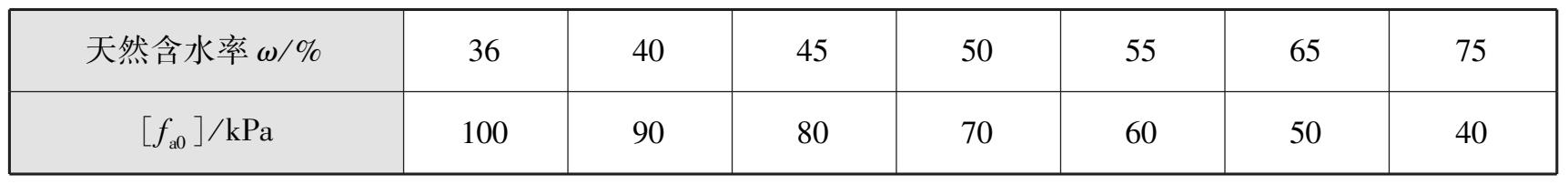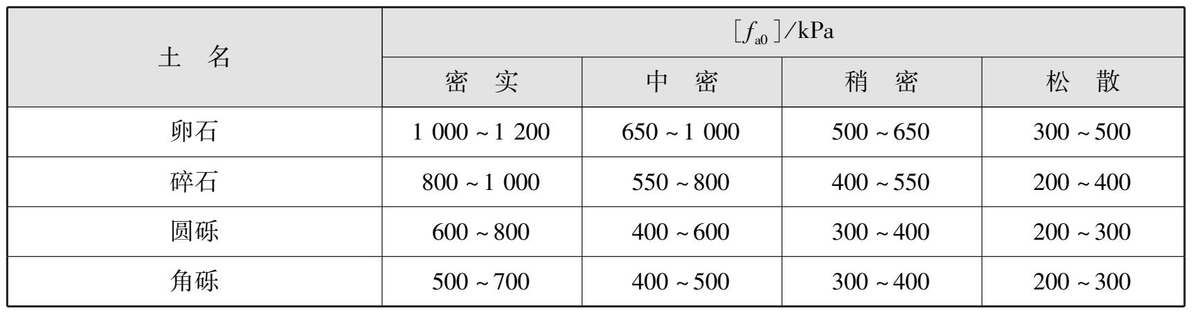 注:①土中含有粒径大于 2 mm的颗粒质量超过总质量的 30%者,[ f a0 ]可适当提高。
