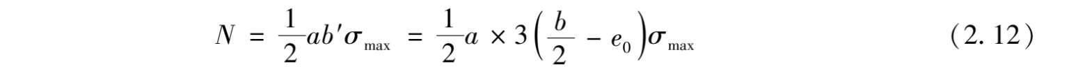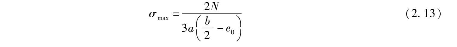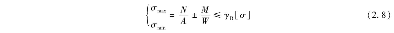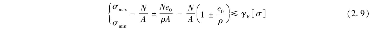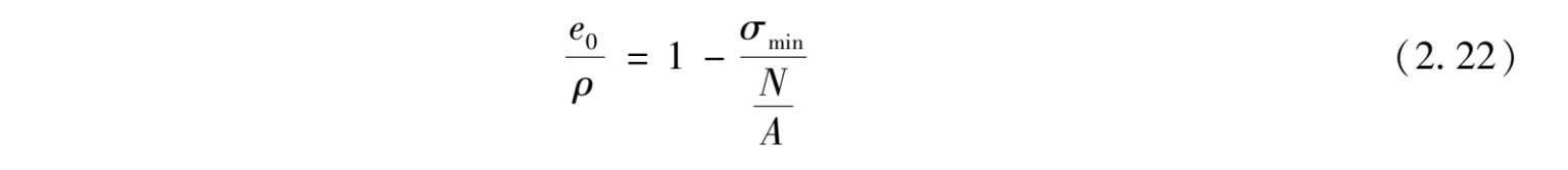 式中符号意义同前,但要注意 N 和 σ min 应在同一种荷载组合情况下求得。验算基底偏心距时,应采用计算基底应力相同的最不利荷载组合。