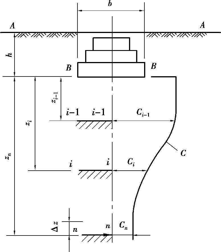 A—A—地面;i—i—第i层底面;B—B—基础底面;n—n—第n层底面;