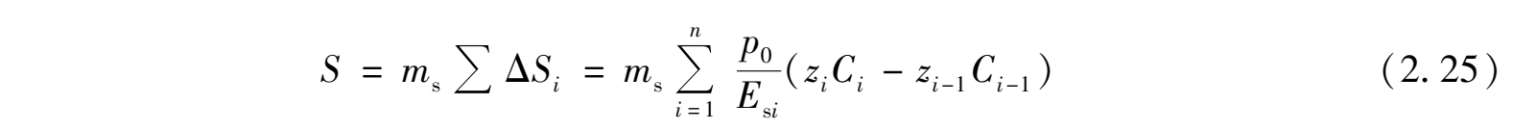 基础由于其底面以下受压土层 z n 压缩产生的总沉降量 S 可按分层总和法(图 2.18)由下式计算: