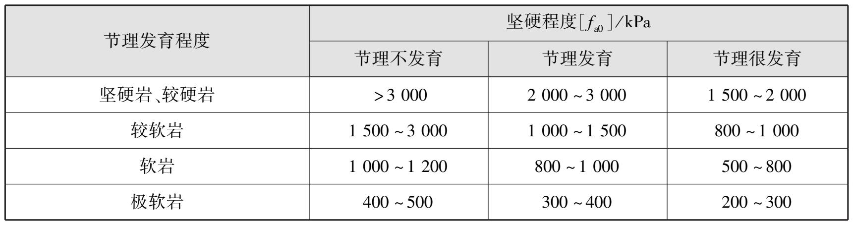 表 2.4 岩石地基承载力基本容许值[ f a0 ]([ σ 0 ])
