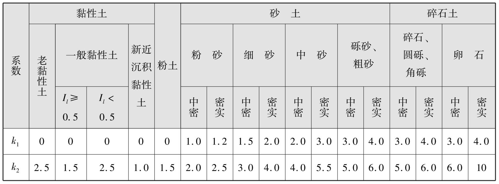 k 1 、 k 2 ——基底宽度、深度修正系数,根据持力层土类按表 2.11 确定。