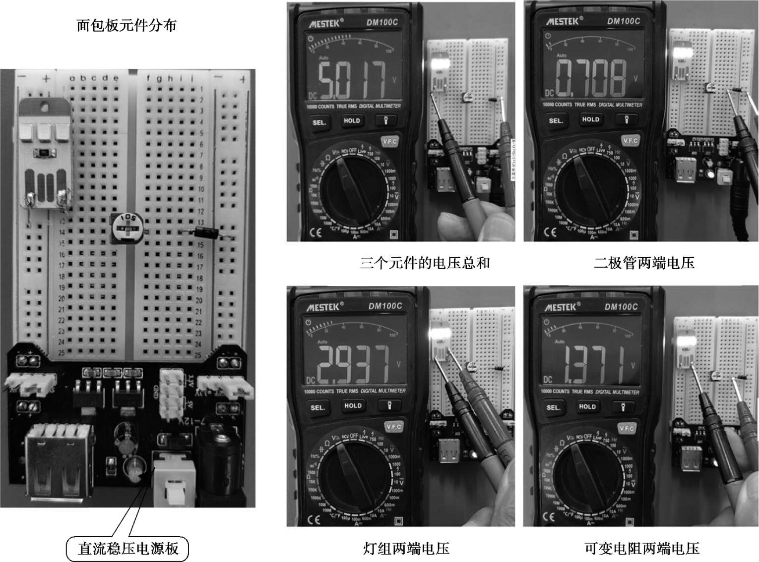 (2)电路中电压的测量,测试过程如图1-44所示。