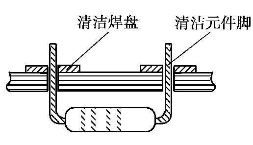 ①同时加热焊盘和元件脚。烙铁头靠在焊盘与元件脚的连接处,加热整个焊接部位,时间大约为2~3秒。