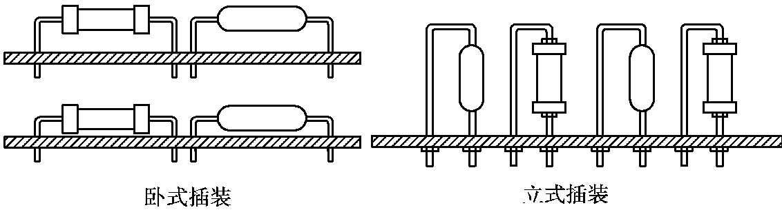 如果元件脚或焊盘在空气中氧化,首先要用小刀和细砂纸清洁元件脚及焊盘,可以先加助焊剂上锡,然后整形元件脚的外形插入焊盘,如图1-50所示。元件的插装方式如图1-51所示。