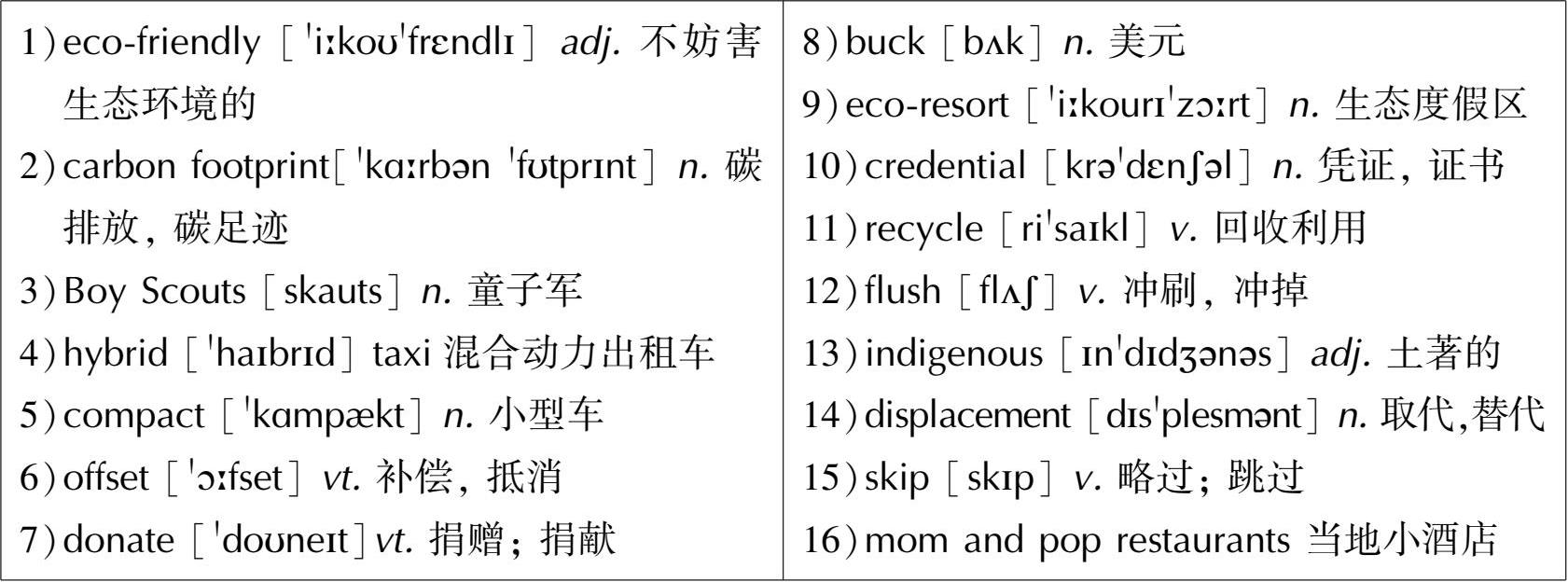 Green travel hones in on (深入研究,用心打磨) the environmental impact of travel businesses and consumers.Green travelers and travel companies seek to reduce the footprint of their efforts through a wide variety of activities that primarily fall under the 3 R’s: reduce, reuse, and recycle.