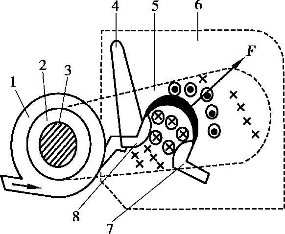 1—磁吹线圈;2—绝缘套;3—铁芯;4—引弧角;5—导磁夹板;6—灭弧罩;7—动触点;8—静触点