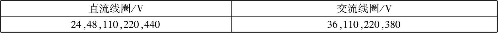 ③线圈额定电压:常用的额定电压等级见表 1.2。