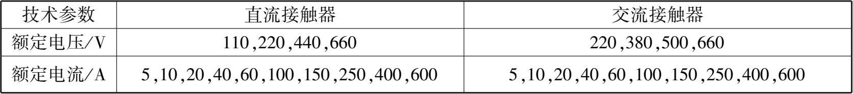 ②额定电流:指主触点的额定电流。表 1.1 列出了交、直流接触器的电压、电流额定值。