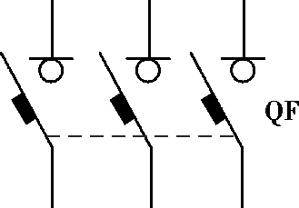 低压断路器的图形符号如图 1.16 所示,文字符号为QF。