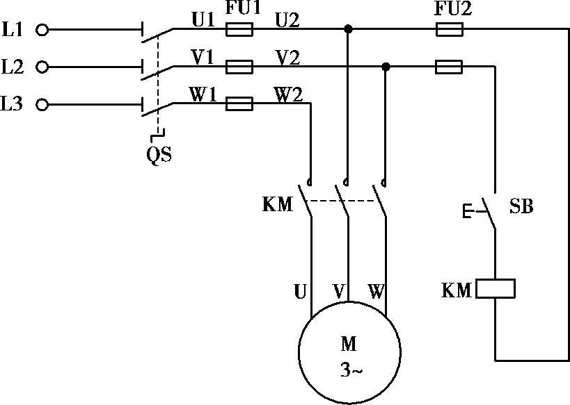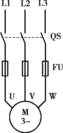 图1.1 三相异步电动机的手动控制电路
