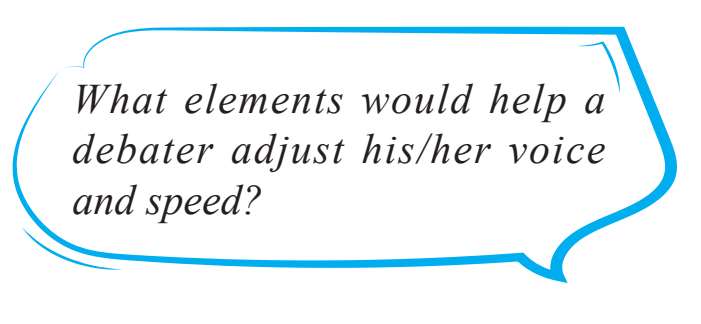 At the elite levels of debate, the speakers talk so fast that virtually no one can understand them. The reason for doing so relates to the need for the debater to fit the maximum number of arguments into a fixed period of time. Being too slow when speakers speak may mean being too boring when others listen. Either way, experience will help one decide when to speed up, when to slow down, and when one is proceeding just right for one’s target audience.