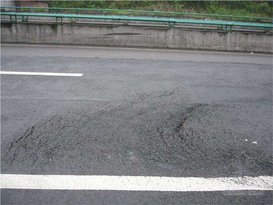 桥面铺装不但需要具有良好的追随钢板变形的性能,而且要求在温度和车辆荷载的共同作用下不产生过大的推移变形(图1.3、图1.4)。同时,铺装层要尽可能密实不透水,具有较好的抵抗疲劳开裂性能和较长的使用寿命。大量桥面铺装病害的反复维修和反复损坏的事实表明,对正交异性钢桥面板,仅改善铺装性能难以从根本上解决问题。开发和研究性能优越、耐久、经济的新型桥面板结构与钢腹板、钢底板共同组成组合箱梁,可增大桥面板刚度,改善桥面板铺装工作条件,是解决钢桥面铺装及其耐久性问题的重要途径,对根除桥面铺装病害具有重要意义。