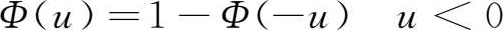 由于标准正态分布关于 y 轴是对称的,所以分布表中一般只列出 x ≥0的数,负值对应的分布函数值可利用对称性求得