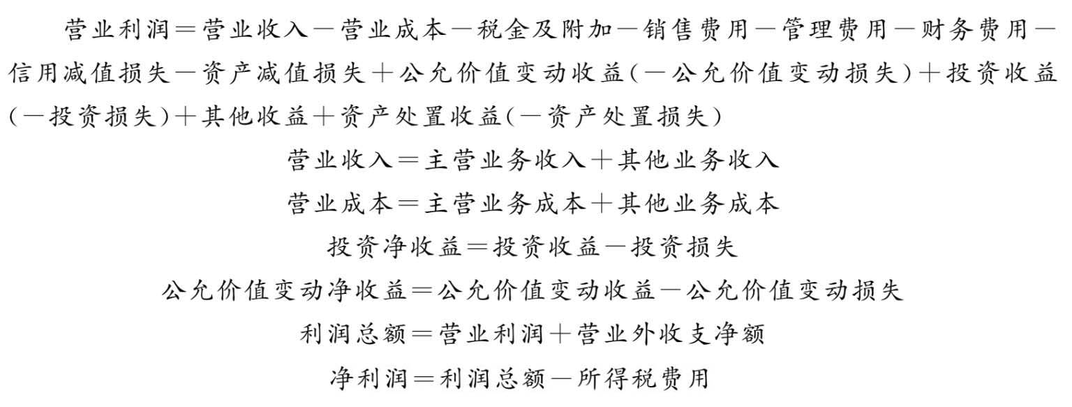 净利润为营业利润和营业外收支净额等两个项目的总额减去所得税费用之后的余额。营业利润是企业在销售商品、提供劳务等日常活动中产生的利润;营业外收支是与企业的日常经营活动没有直接关系的各项收入和支出,其中营业外收入项目主要有捐赠收入、固定资产盘盈、处置固定资产净收益、罚款收入等,营业外支出项目主要有固定资产盘亏、处置固定资产净损失等。其有关公式表示如下: