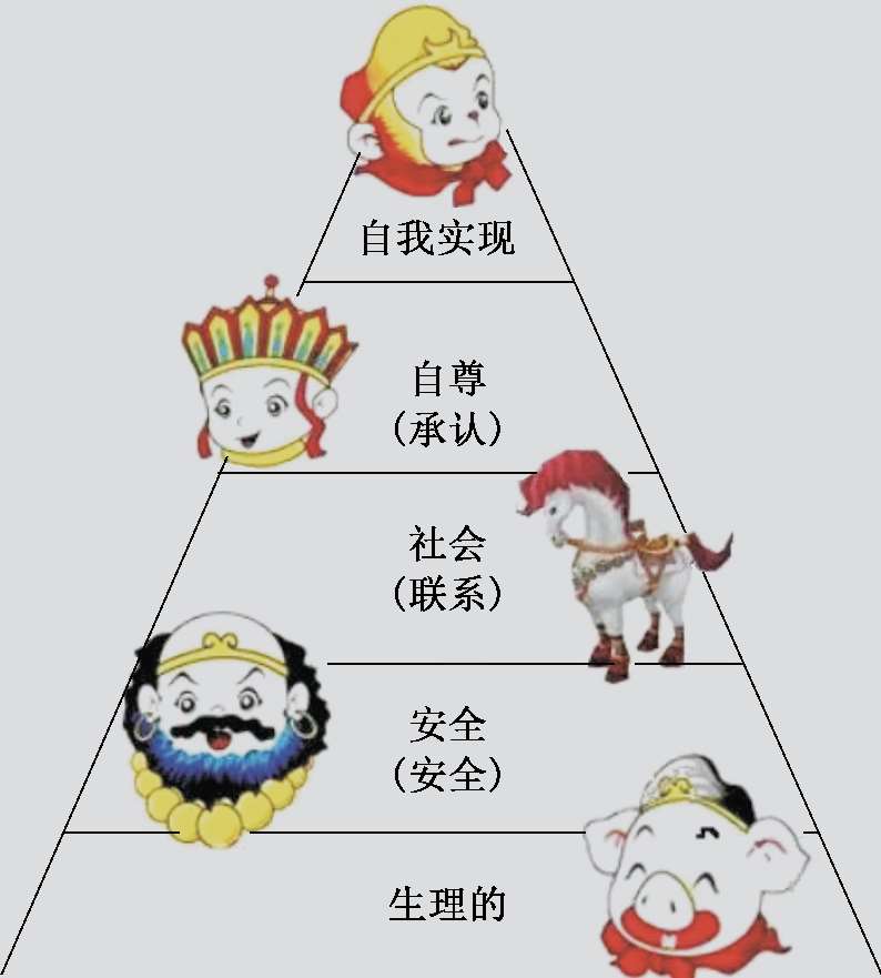 以《西游记》中的取经五人团队来说明马斯洛的需求层次理论:
