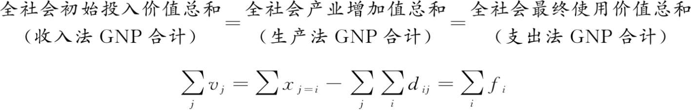 在关于国民生产总值(GNP)的核算中,也有一个三边等价关系,即收入法GNP合计=支出法GNP合计=生产法GNP合计。下面我们来看看投入产出表对此如何体现。