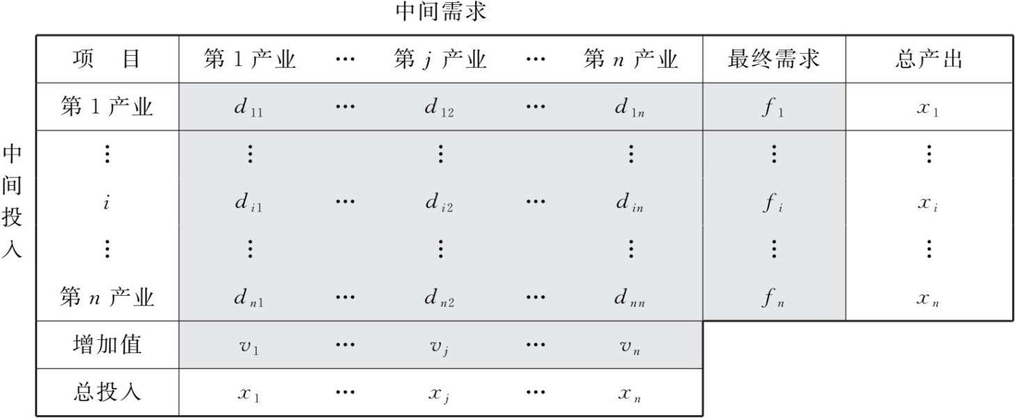 价值计量正好可以弥补实物计量的这些不足。因此,在实际的数据处理中,基本都是用价值单位。事实上,世界各国编的投入产出表一般都是价值计量单位。表3-1是一张最简单的价值型投入产出表形式。