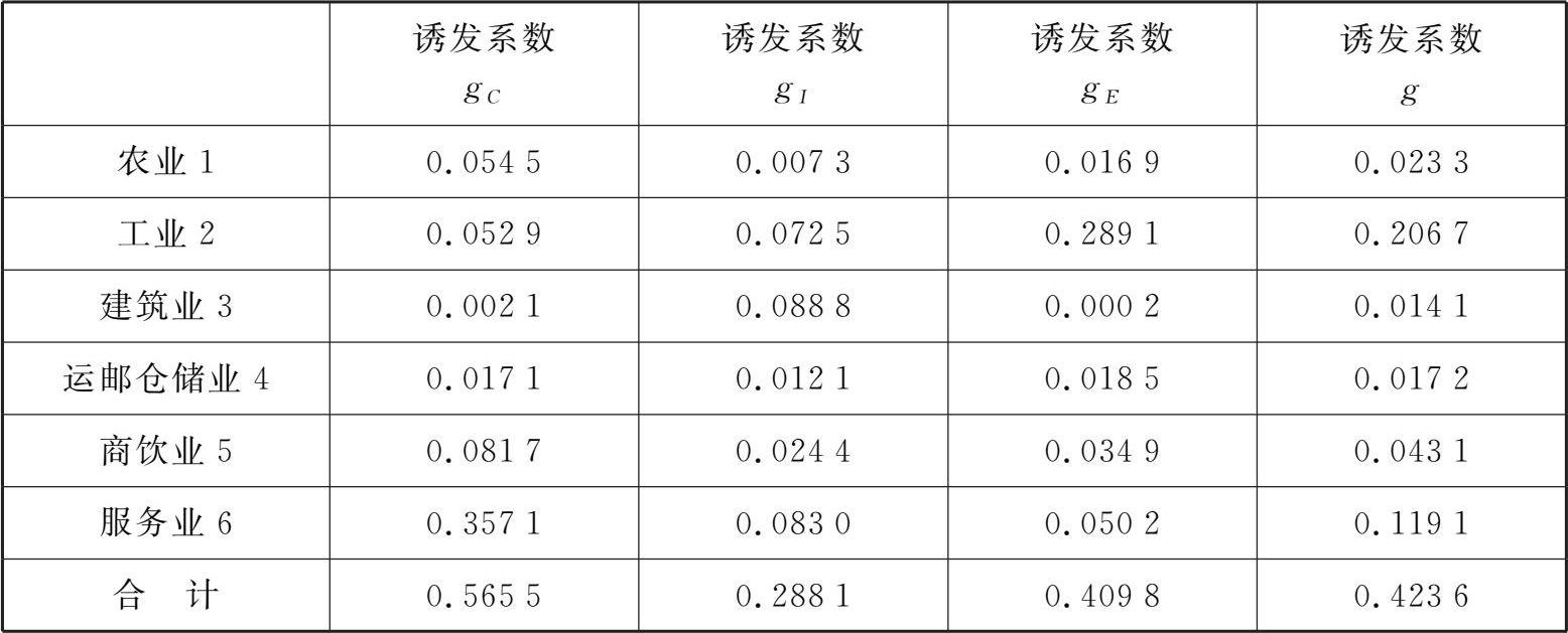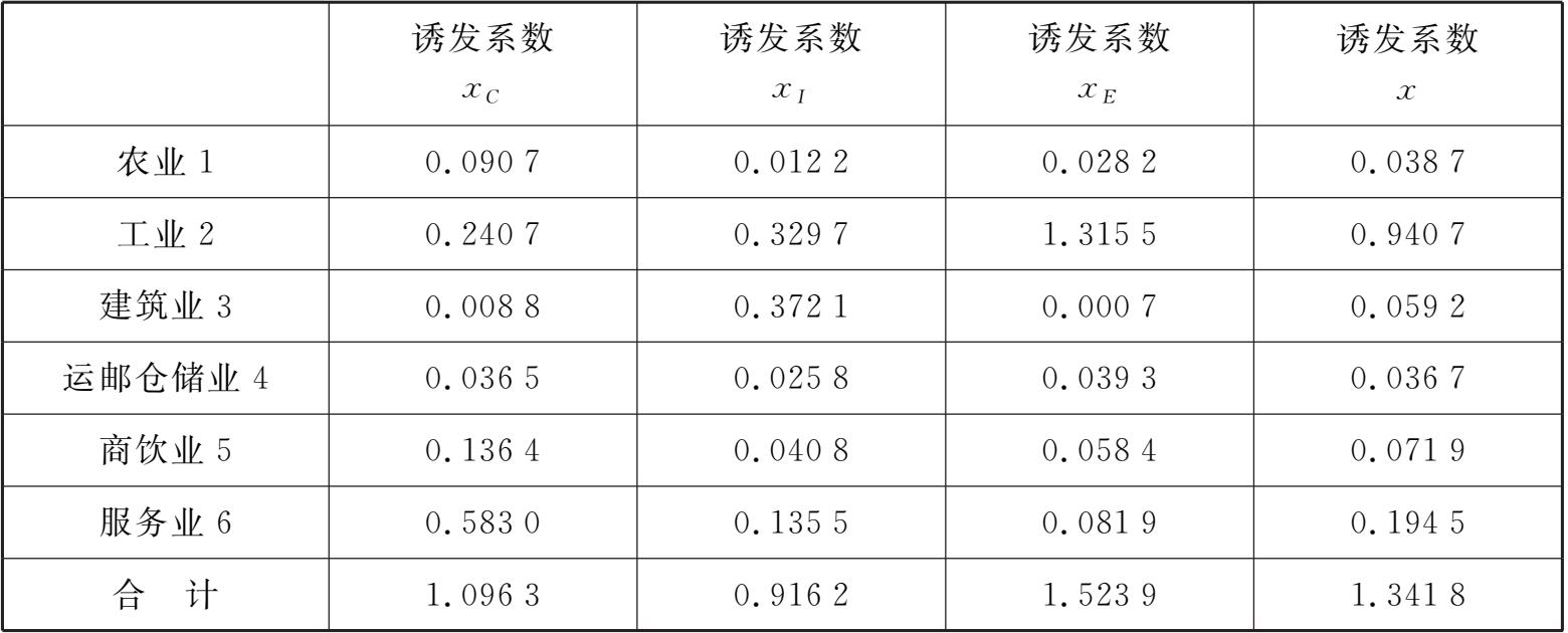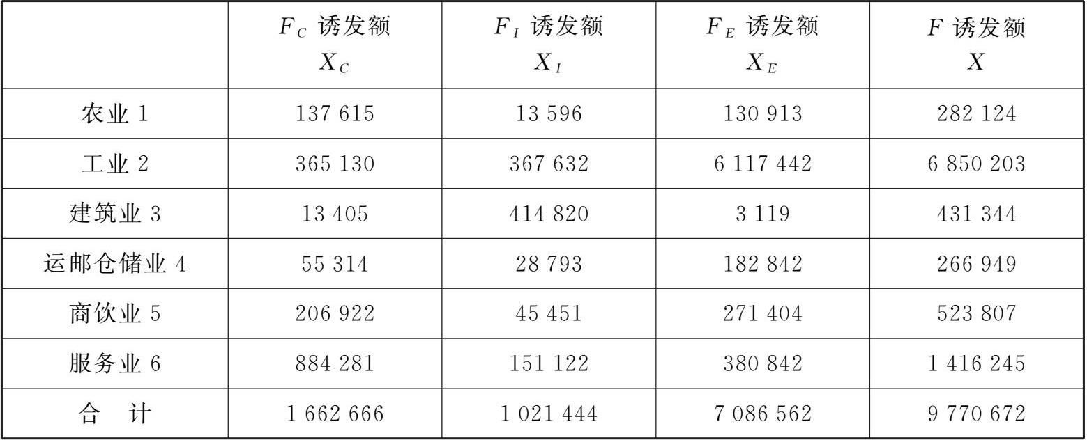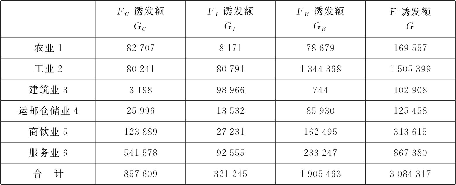 最终需求是影响生产的主要因素,最终需求决定了总产出。利用列昂惕夫逆矩阵可对各产业的生产诱发额和生产诱发系数进行分析。