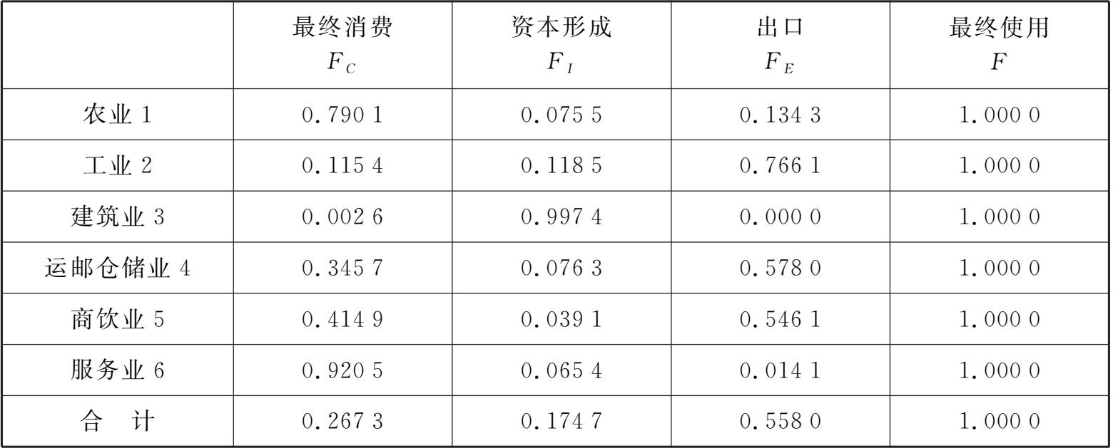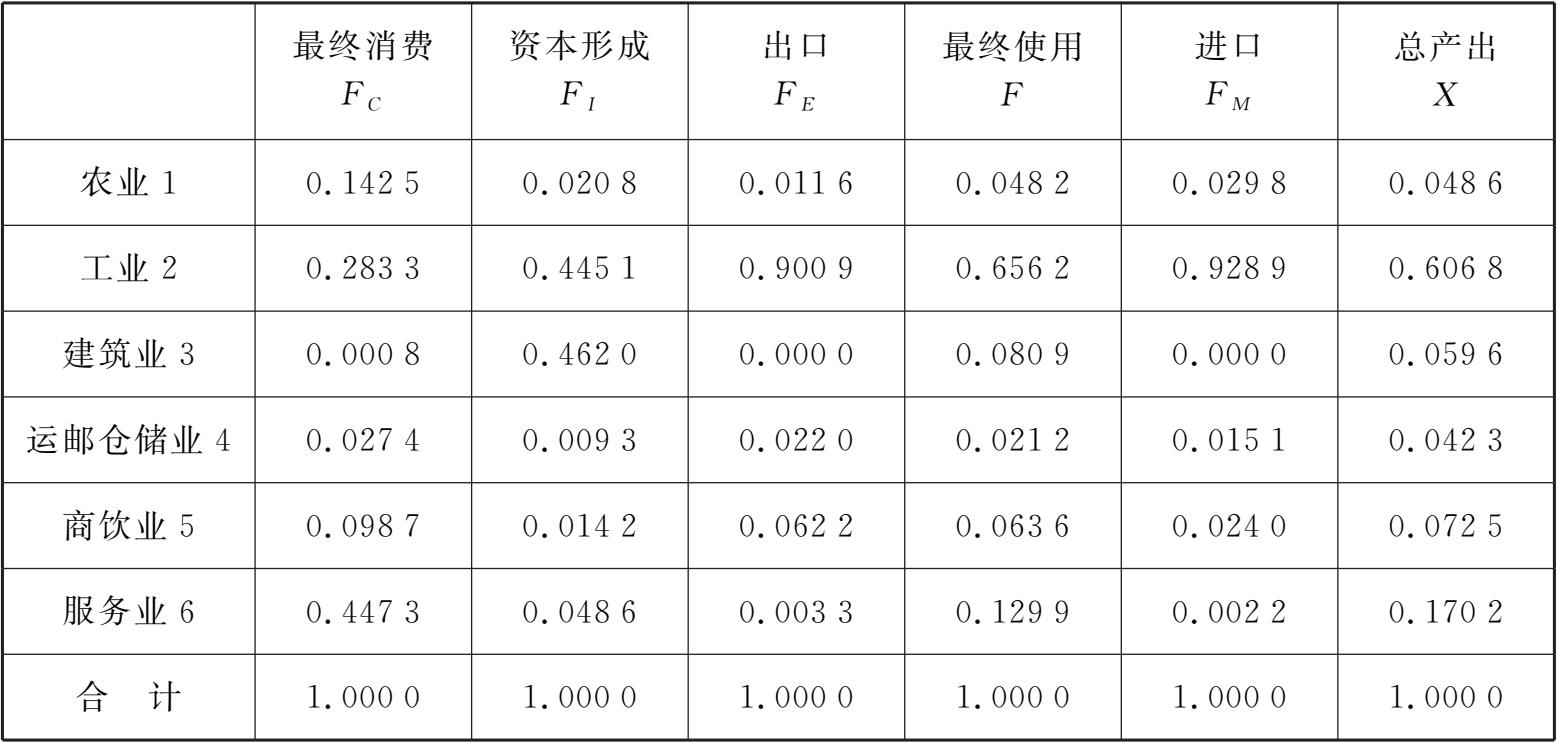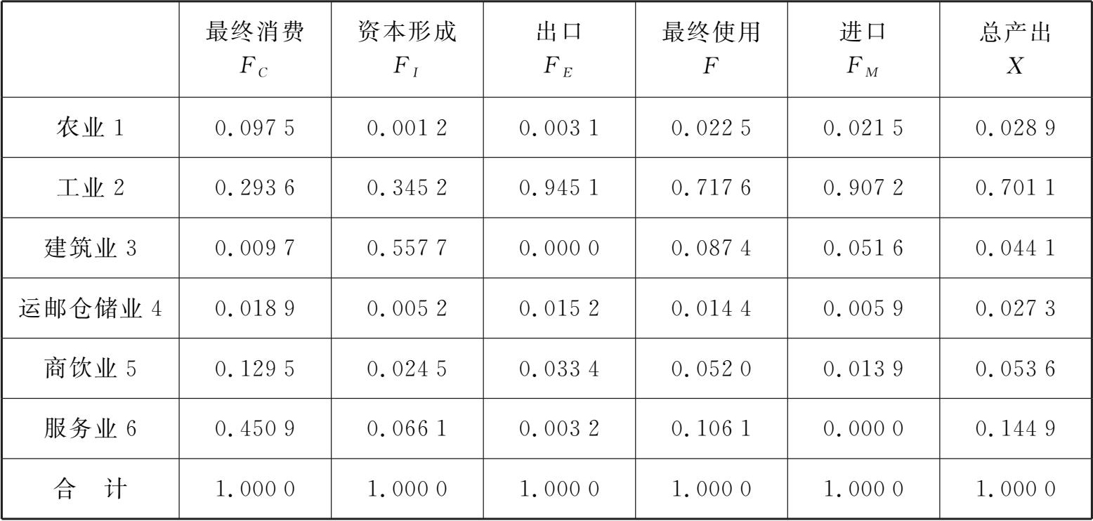 分析最终需求的分配结构就是分析最终需求的项目构成,最终需求的分配结构亦称行结构,其系数定义如下: