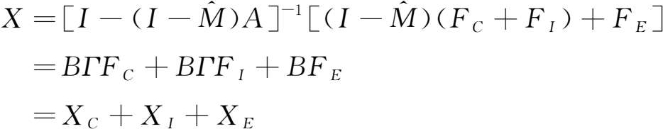 式中,G C ,G I ,G E 分别表示最终消费F C 、资本形成F I 、出口F E 通过X C ,X I ,X E 诱发出的增加值向量。