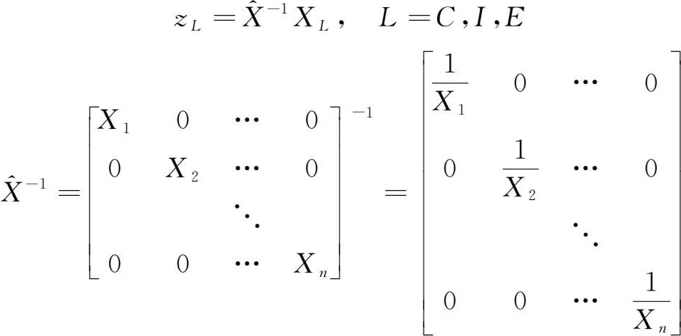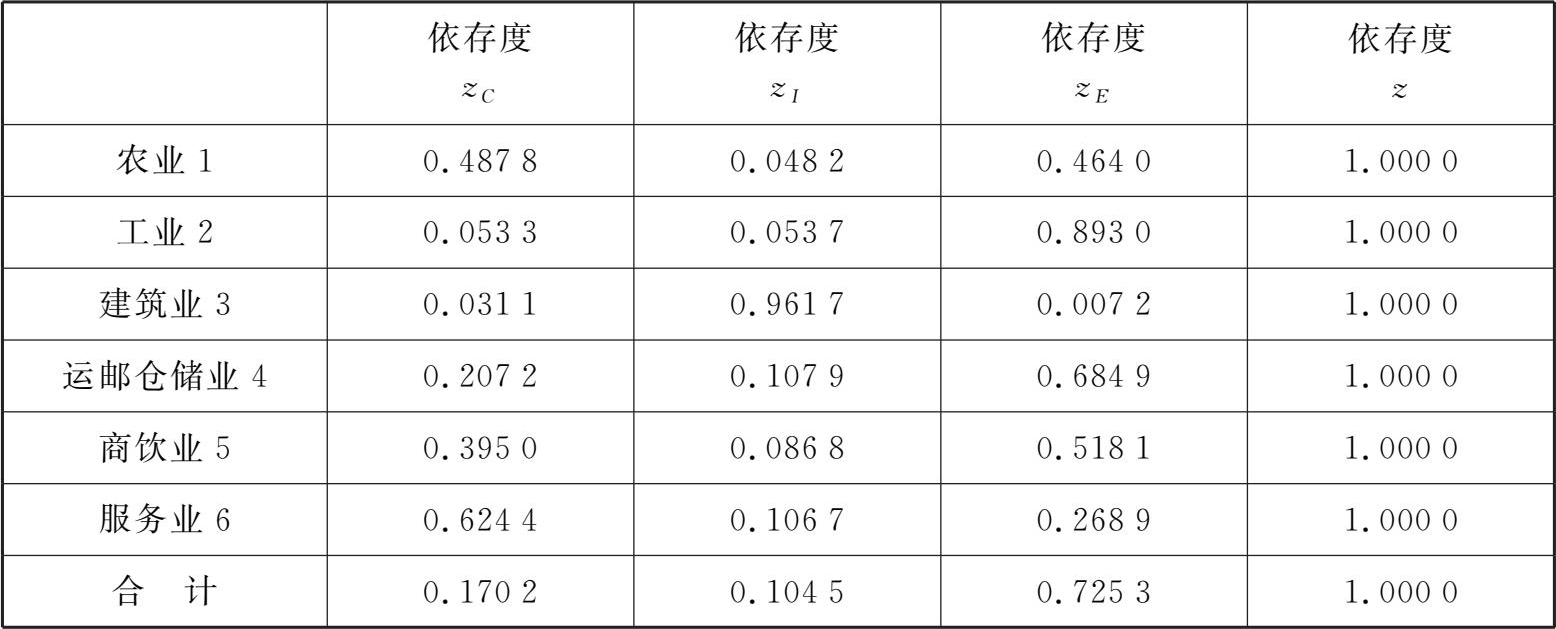 式中, z C , z I , z E 分别表示最终消费、资本形成、出口的生产依存度系数向量。