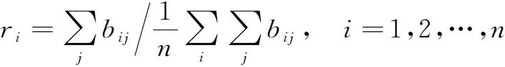 式中, r i 表示第 i 部门的感应度系数; b ij 表示第 j 部门生产单位最终产品完全需要的第 i 部门产品的数量,是列昂惕夫逆矩阵( I - A ) -1 的系数。